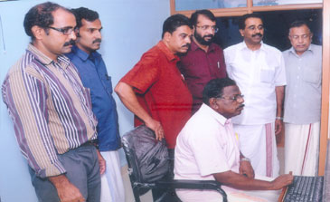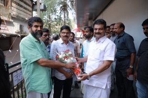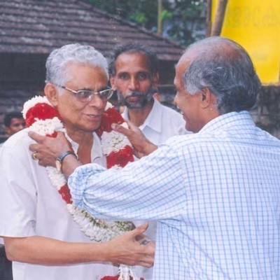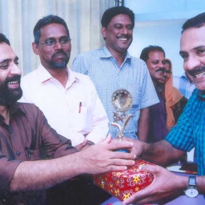 ടി.കെ.ഹംസയെ ശിവമോഹനന് സര് സ്വീകരിക്കുന്നു. സമീപം പി.സി.അച്ചുവേട്ടന്, ദാസേട്ടന്