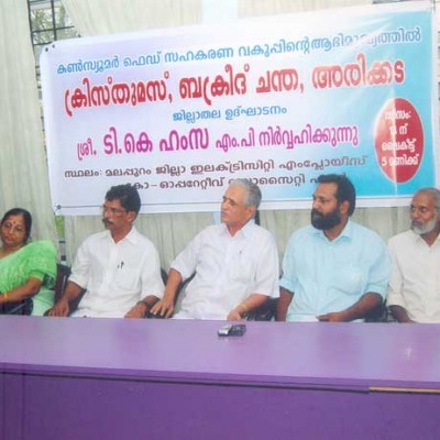 ക്രിസ്തുമസ്-ബക്രീദ് ചന്ത മുന് എം.പി. ടി.കെ.ഹംസ ഉദ്ഘാടനം ചെയ്യുന്നു